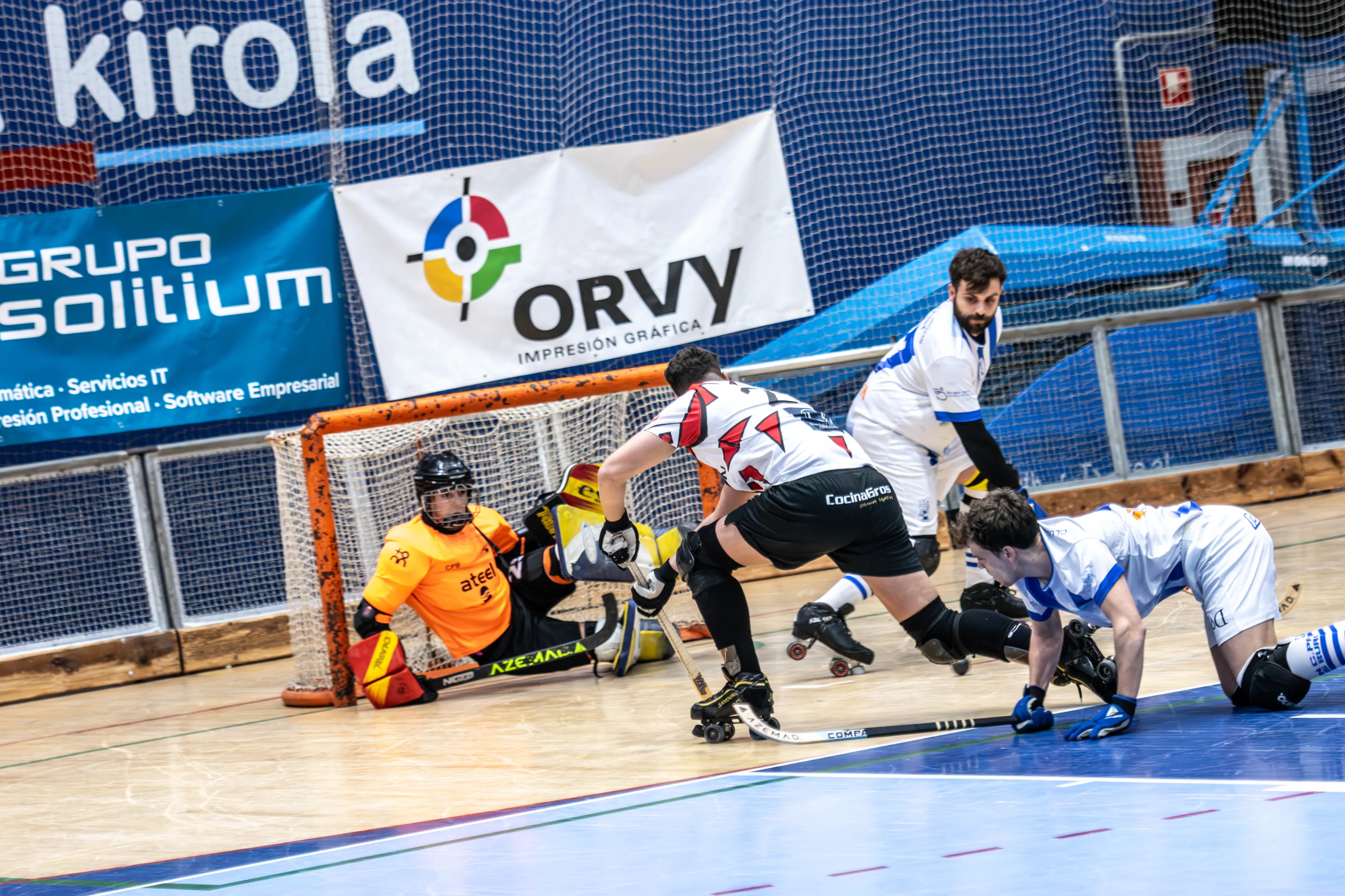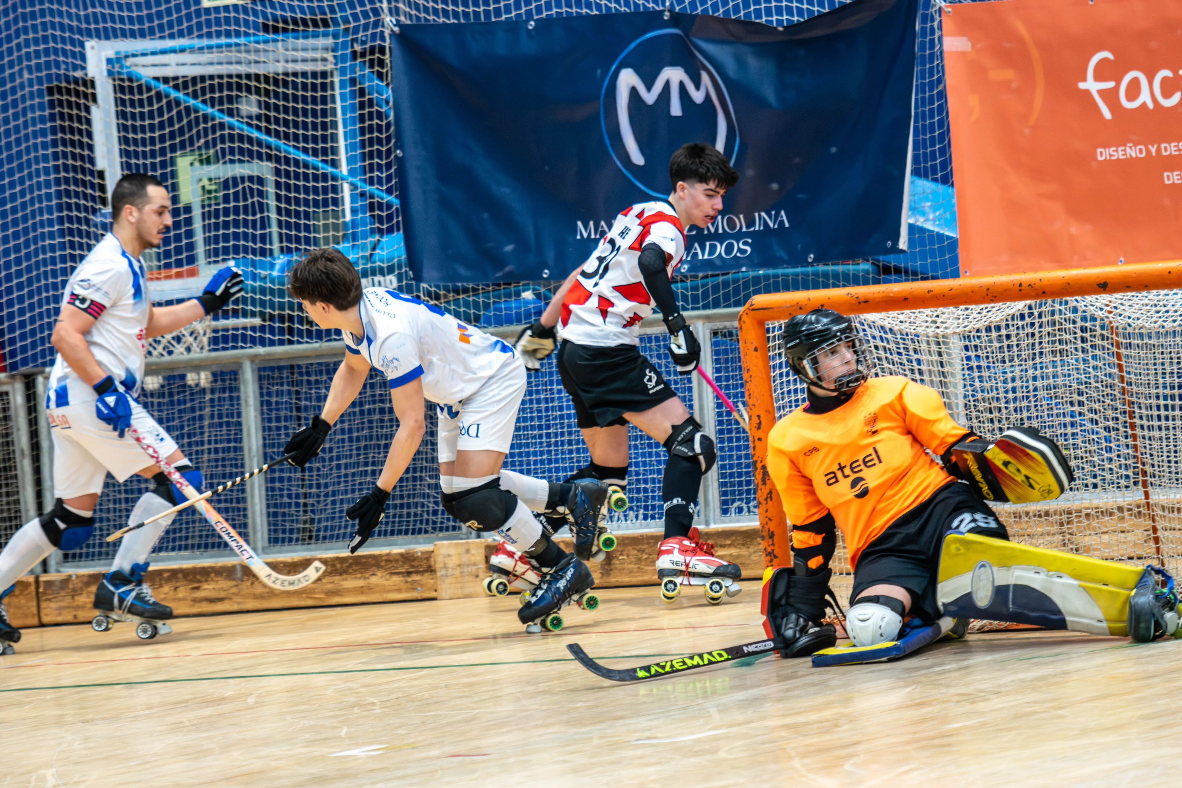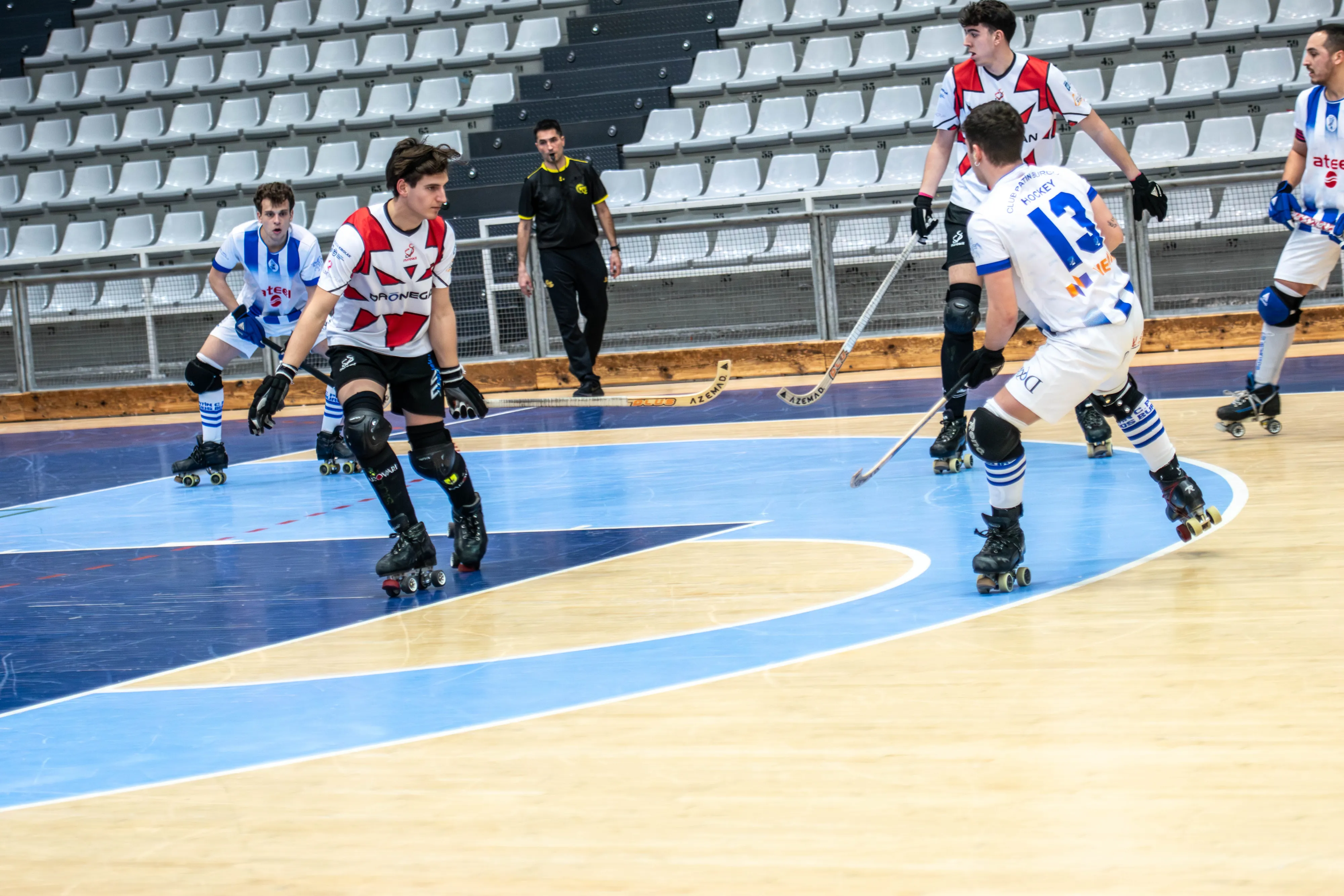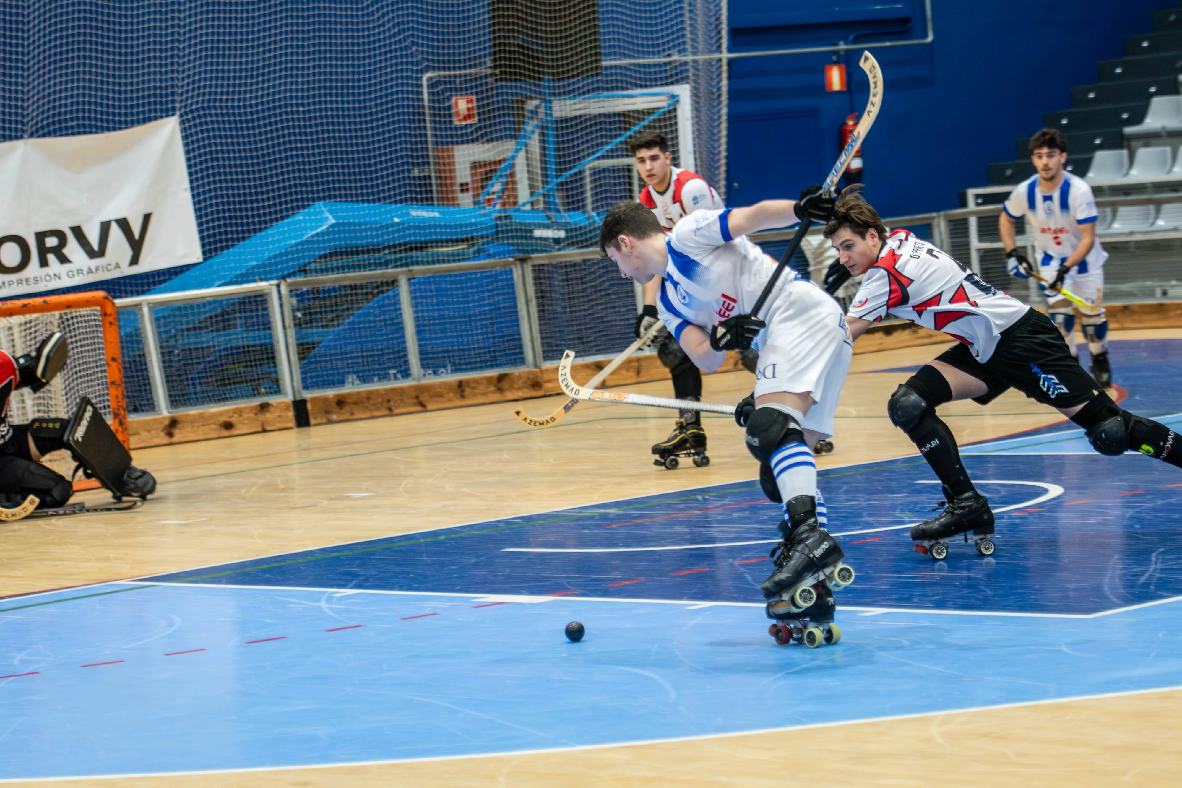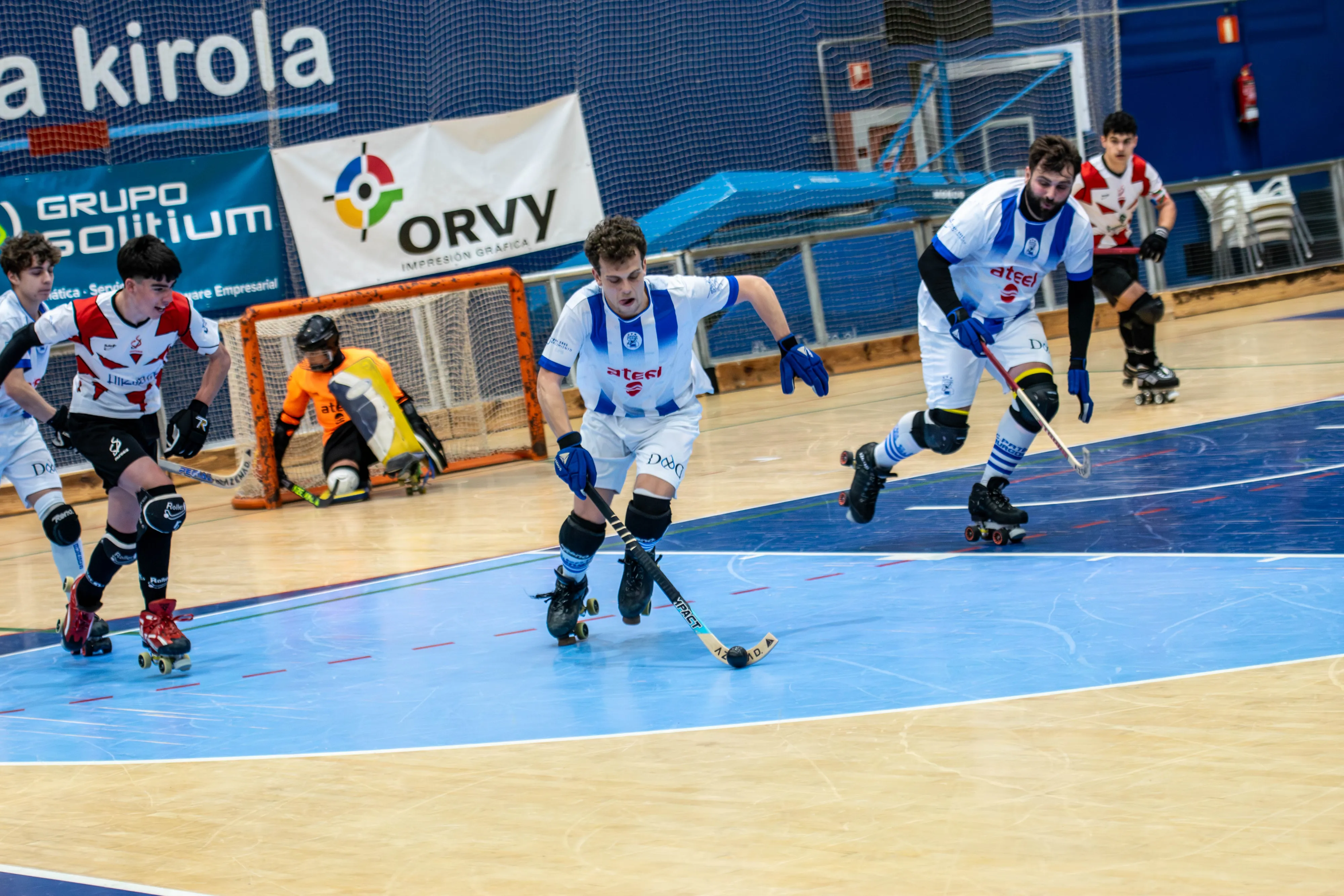 El tiempo muerto visitante llegó en el 13:25 del primer periodo, signo de un pulso táctico vibrante. Burgos volvió a adelantarse en el 05:31, pero el carácter de CD Mundaiz apareció con fuerza: gol de Hegoi Bengoetxea en el 03:40 y vuelta de tuerca con el 3-2 de Nicolás Sandonís en el 02:18. Antes del cierre del periodo, el banquillo local solicitó un tiempo muerto (00:52) para ajustar detalles y proteger la ventaja.